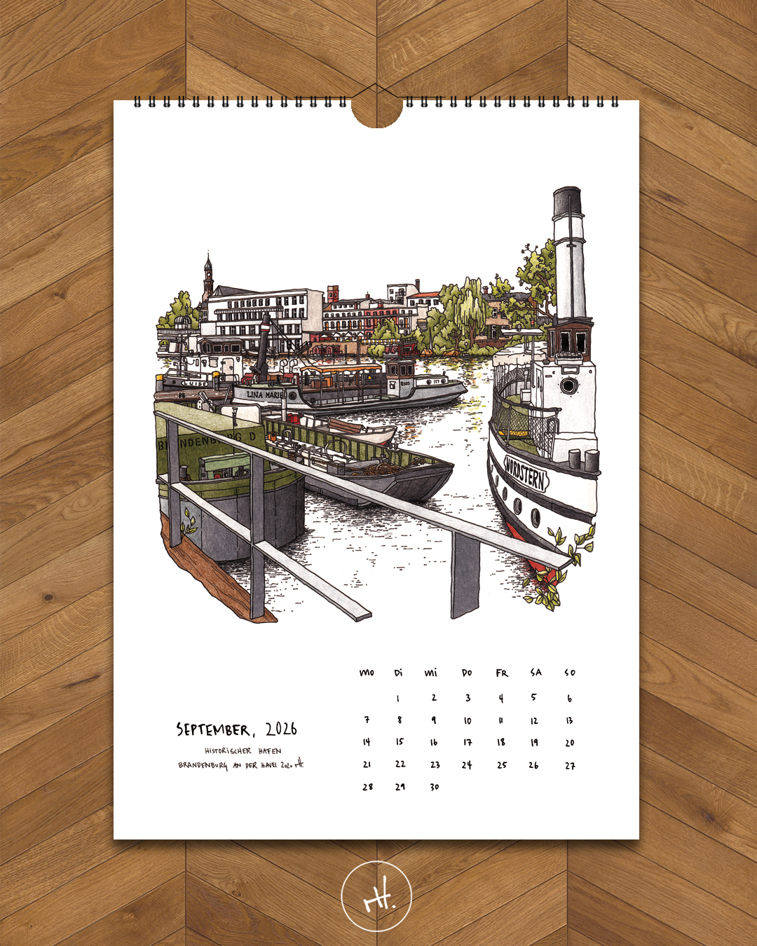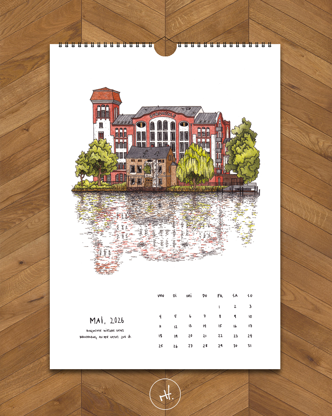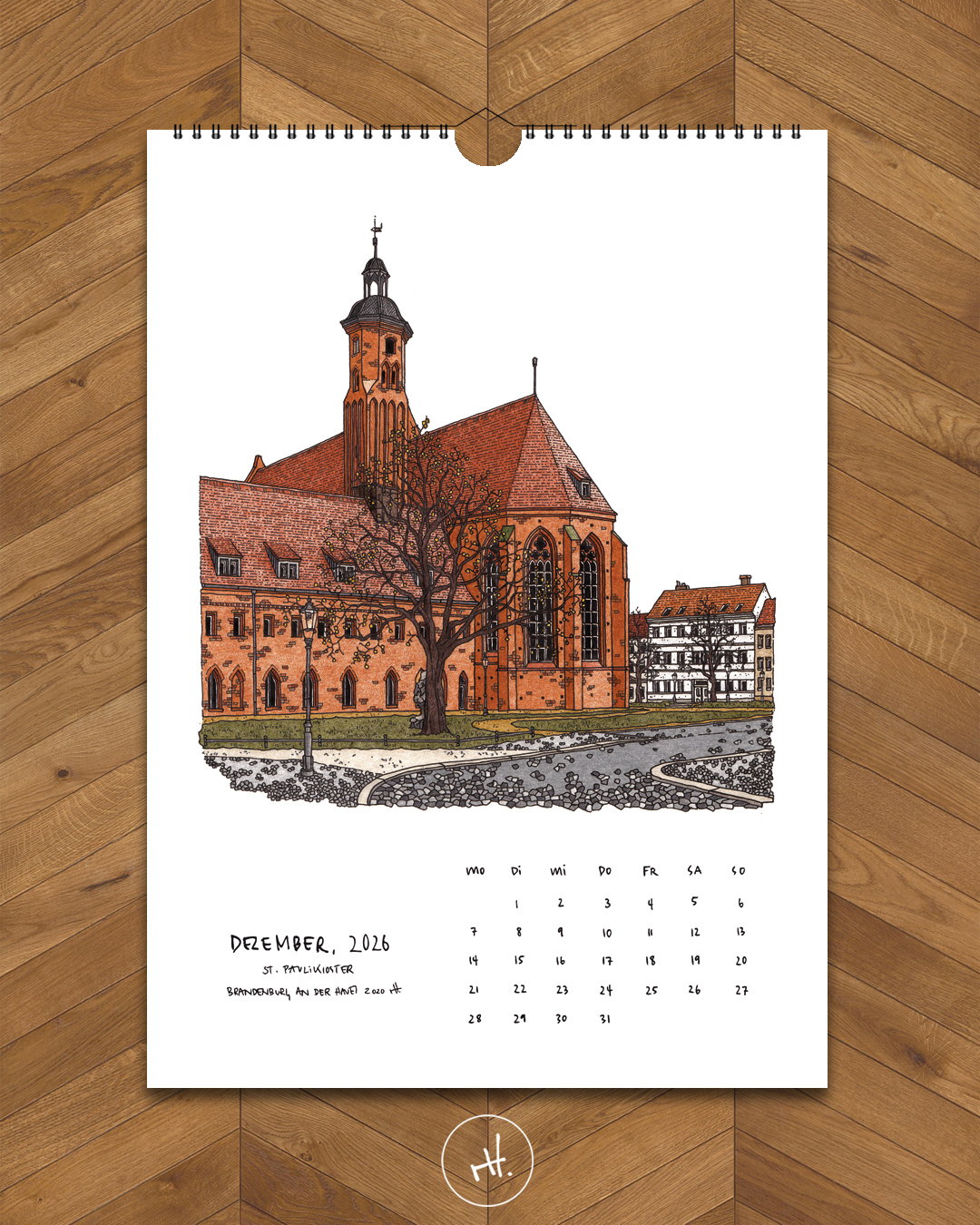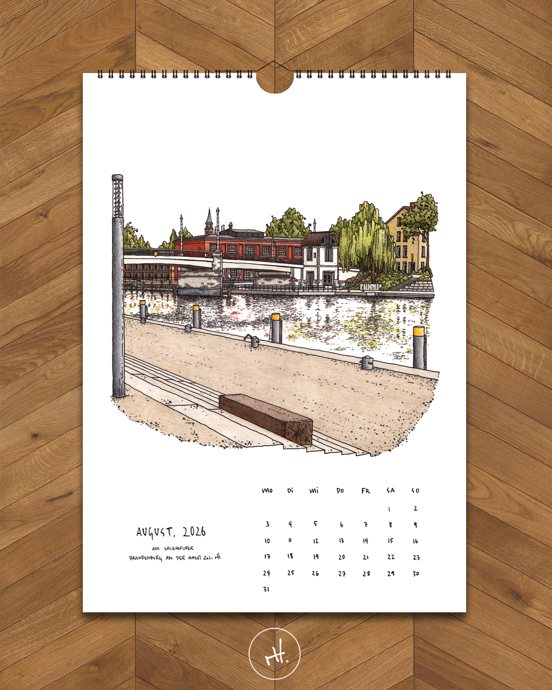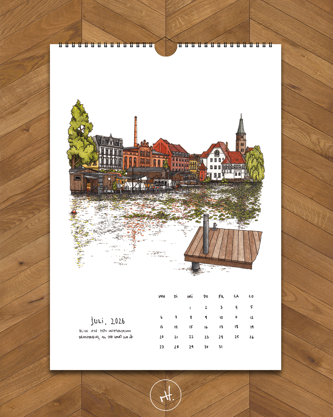 12 Klassiker unter den Stadtansichten im Din A3 Hochformat könnt ihr ab sofort hier kaufen. Das Format einmal gedreht um 90 Grad, ein kleines Kalendarium, dafür noch mehr Platz die Kunst. Wunderbar auch als Geschenk geeignet oder für ein Stück Brandenburg in den eigenen 4 Wänden
